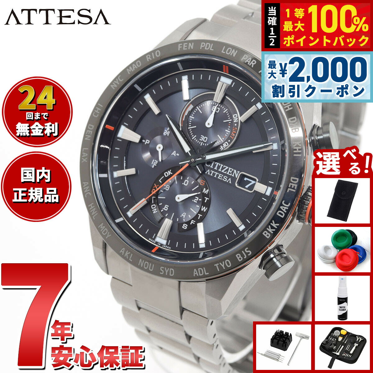 【選べる特典付!】シチズン アテッサ CITIZEN ATTESA 腕時計 CC4058-67X メンズ ダブルダイレクトフライト ACT Line エコ・ドライブ ソーラーGPS衛星電波 チタンバン...