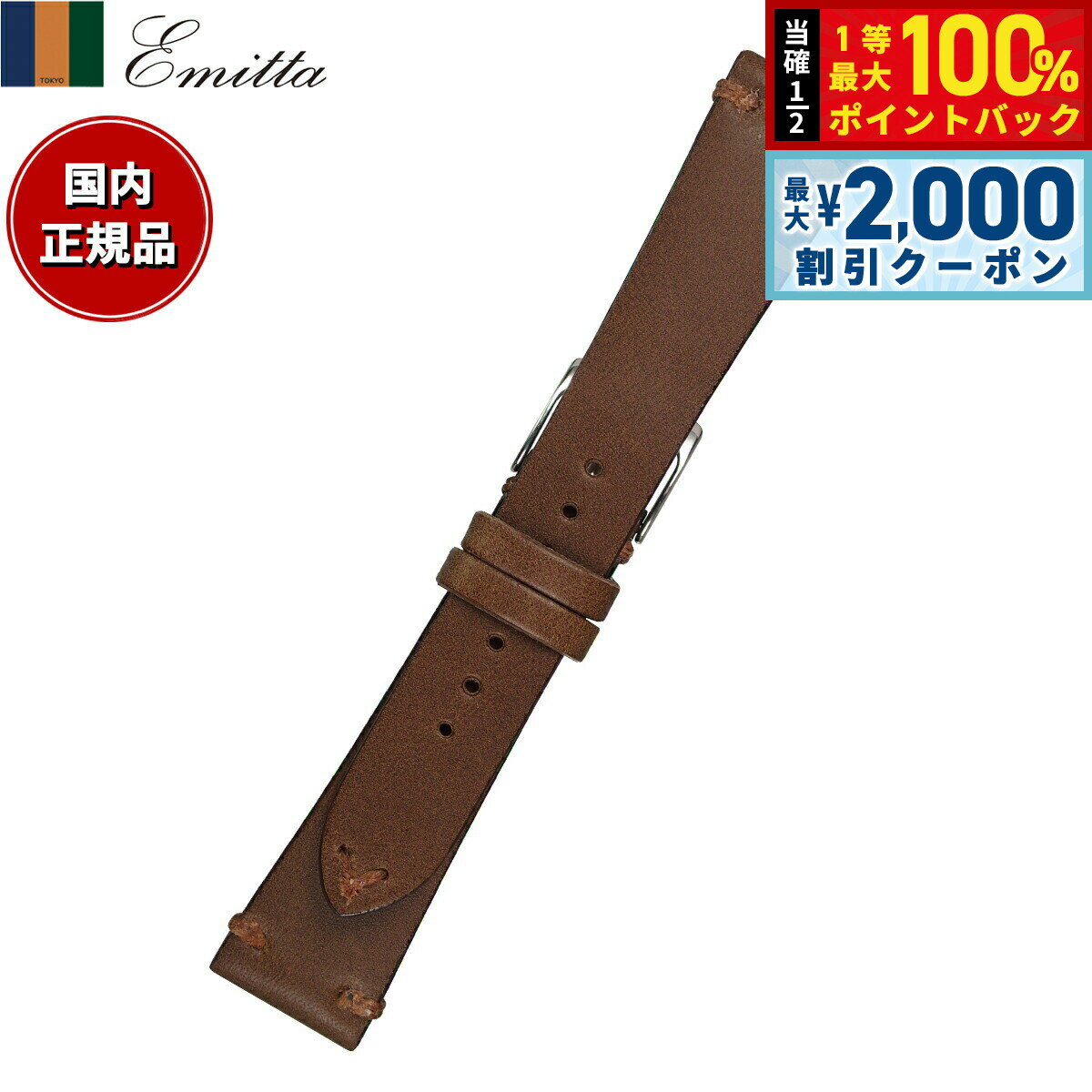 【15日限定!2000円OFFクーポン&抽選で最大10000ptバック】エミッタ Emitta 腕時計 替えバンド ベルト メンズ ブッテーロ カーフ 19mm ダークブラウン/シルバー 時計 時計バ...