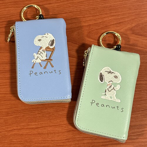 送料無料 ピーナッツ/スヌーピー キーパスポーチ 刺繍 SPZ-4002-3 /グリーン ブルー