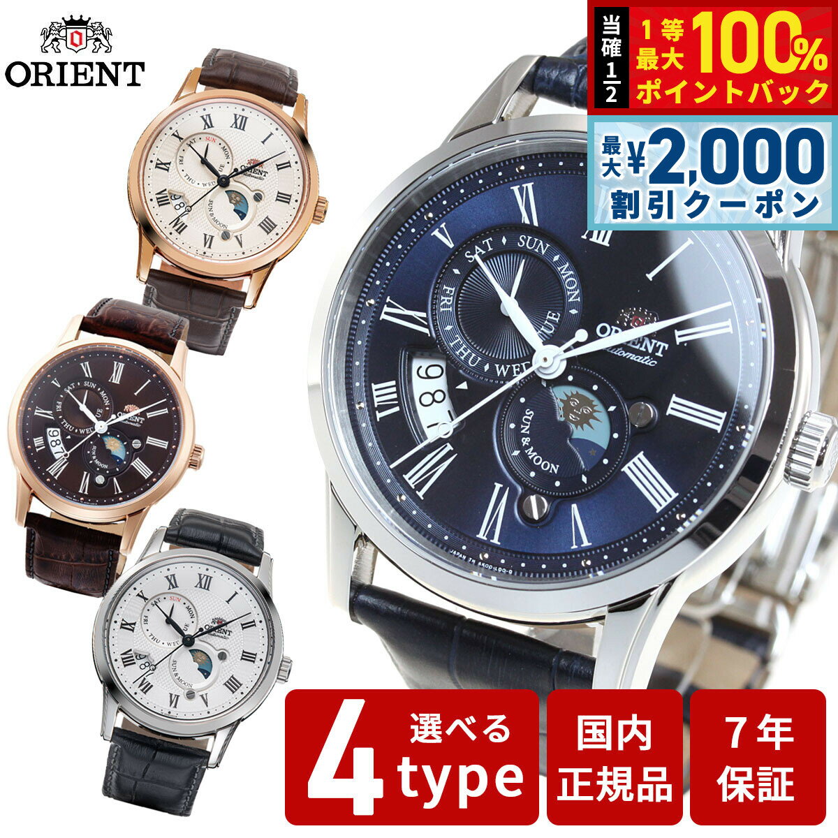 オリエント 腕時計 ORIENT クラシック サン&ムーン 42.5mm 自動巻き RN-AK0001S ブランド おしゃれ 防水 プレゼント 男性 実用的