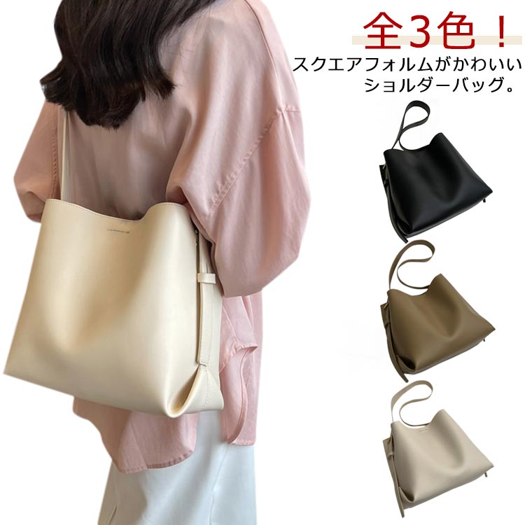 ショルダーバッグ トートバッグ レディース スクエア 仕切り ファスナー ハンドバッグ 2way 斜め掛け 肩掛け 大容量 通勤 通学 フェイクレザー シンプル おしゃれ かわいい オフィス きれいめ...