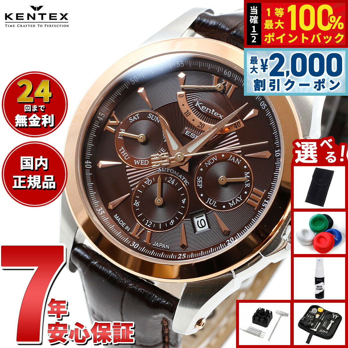 【3/5は当店限定Wイベント!2000円OFFクーポン&抽選で最大10000ptバック】【選べるノベルティー付き】ケンテックス KENTEX 腕時計 時計 メンズ 日本製 自動巻き マルチファンクショ...