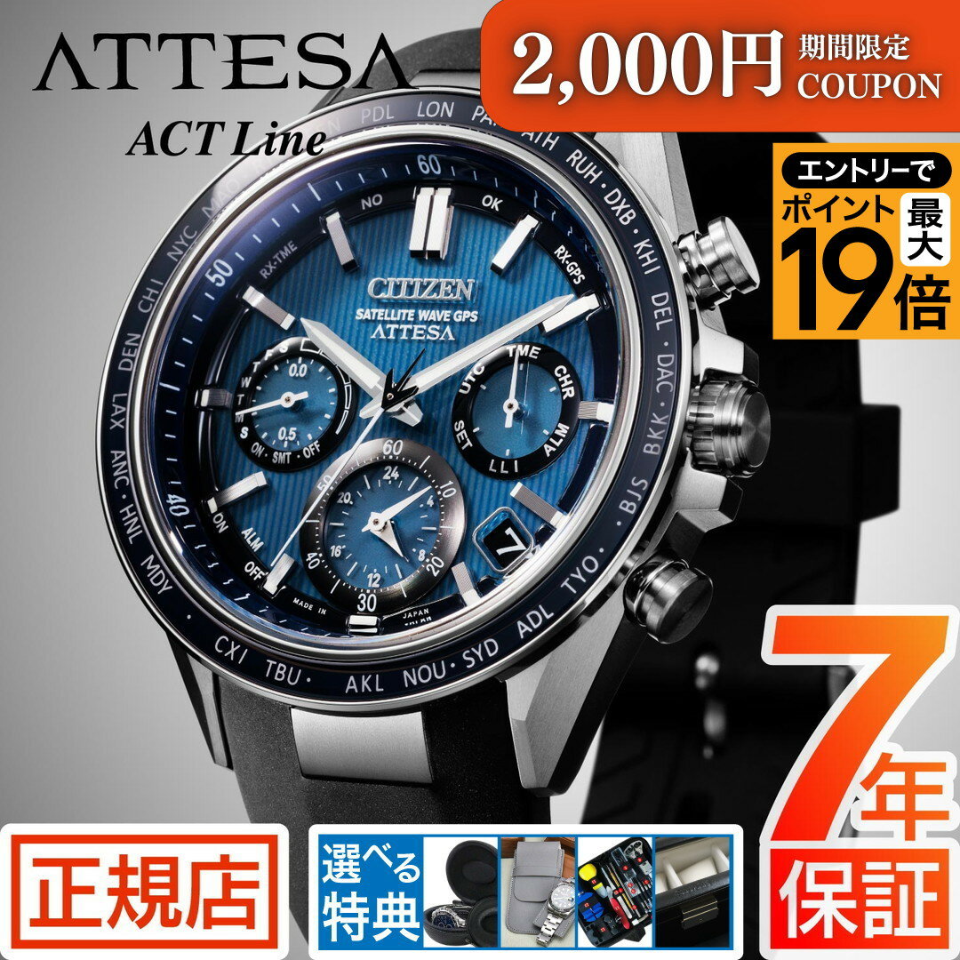 【選べる特典&丸型時計ケース付!】シチズン アテッサ CITIZEN ATTESA ソーラーGPS衛星電波 メンズ 腕時計 CC4106-74E ACT Line ダブルダイレクトフライト Blue ...
