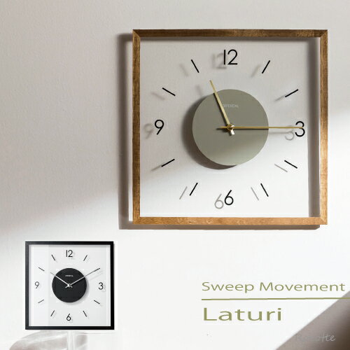 【ポイントUP&乾電池付き】掛け時計 インターフォルム おしゃれ 木製 静音 連続秒針 音がしない 北欧 かわいい ナチュラル モダン 四角 スクエア 薄型 ガラス ウッドフレーム ブラック 黒 ブラ...