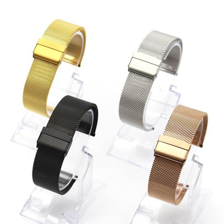 高品質ステンレススチールメッシュ時計バンド 12mm/13mm/14mm/16mm/17mm/18mm/19mm/20mm/22mm 調整可能 男女兼用 シルバー/ブラック/ゴールド/ローズゴールド ...