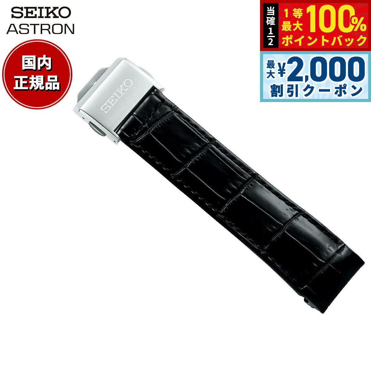 【15日限定!2000円OFFクーポン&抽選で最大10000ptバック】セイコー アストロン SEIKO ASTRON 腕時計 革製 替えバンド ベルト メンズ ブラック クロコダイル 21mm 標準...