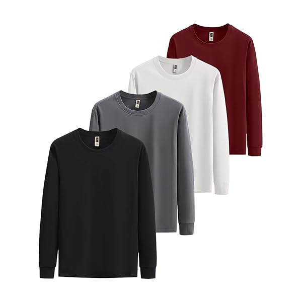 6.8oz ロングtシャツ ゆったり 2/4枚組 綿100% リブ袖口 あったか インナーシャツ メンズ 長袖 下着 ヘビーウェイト 防寒 インナー 無地 やわらか肌着 丸首 ティーシャツ カジュアル...