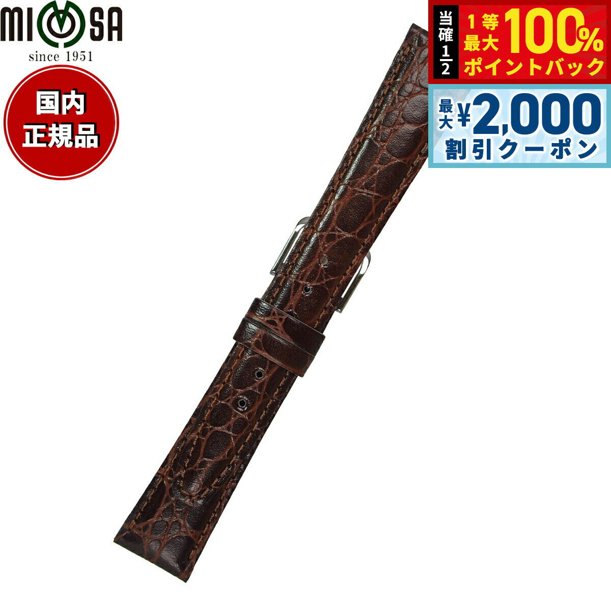 【15日限定!2000円OFFクーポン&抽選で最大10000ptバック】ミモザ MIMOSA 腕時計 替えバンド ベルト メンズ RA型押ワニ カーフ 16mm ダークブラウン/シルバー 時計 時計バ...