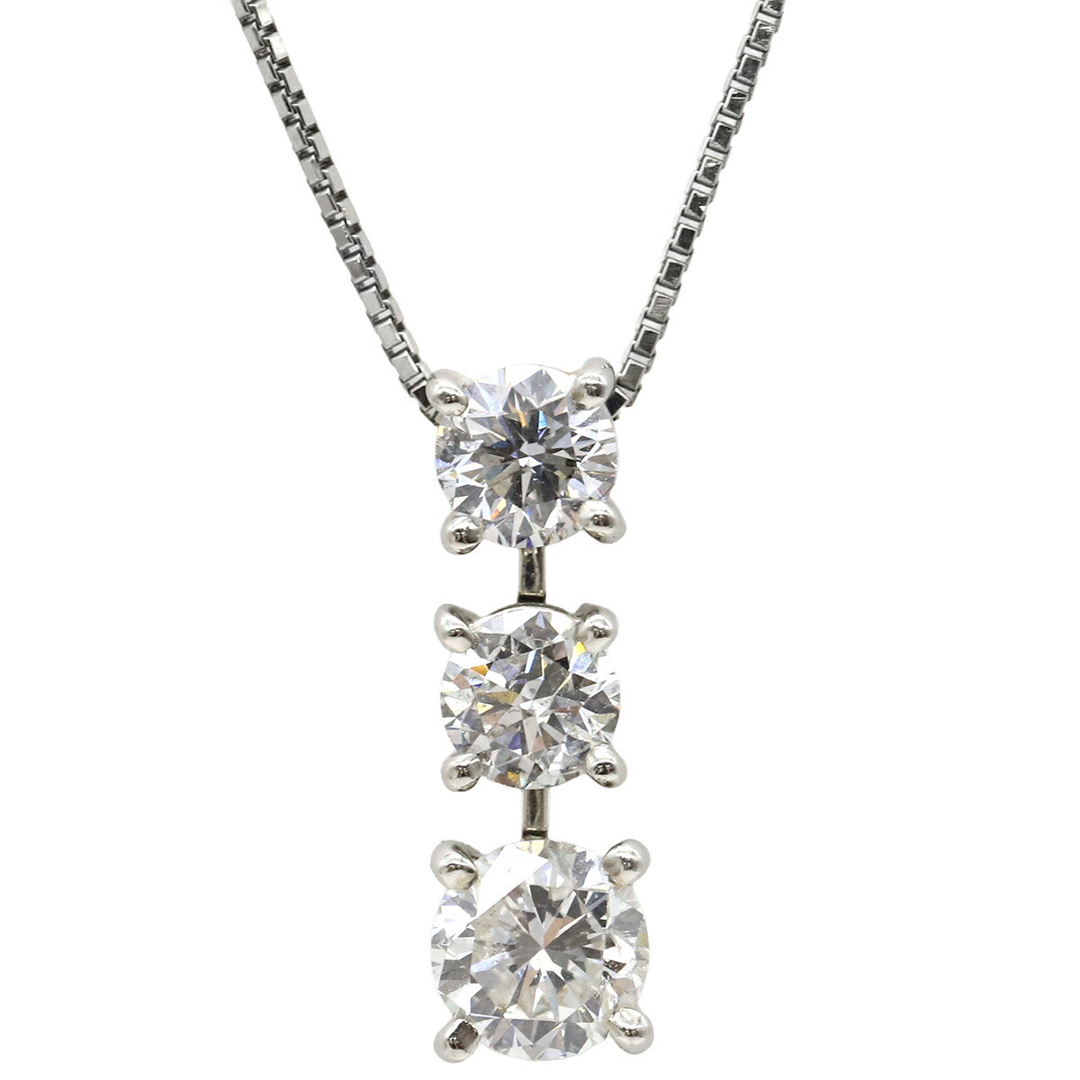ネックレス Pt900 シルバー Pt900×Pt850 コンビ 3連 ダイヤ ペンダント 中古