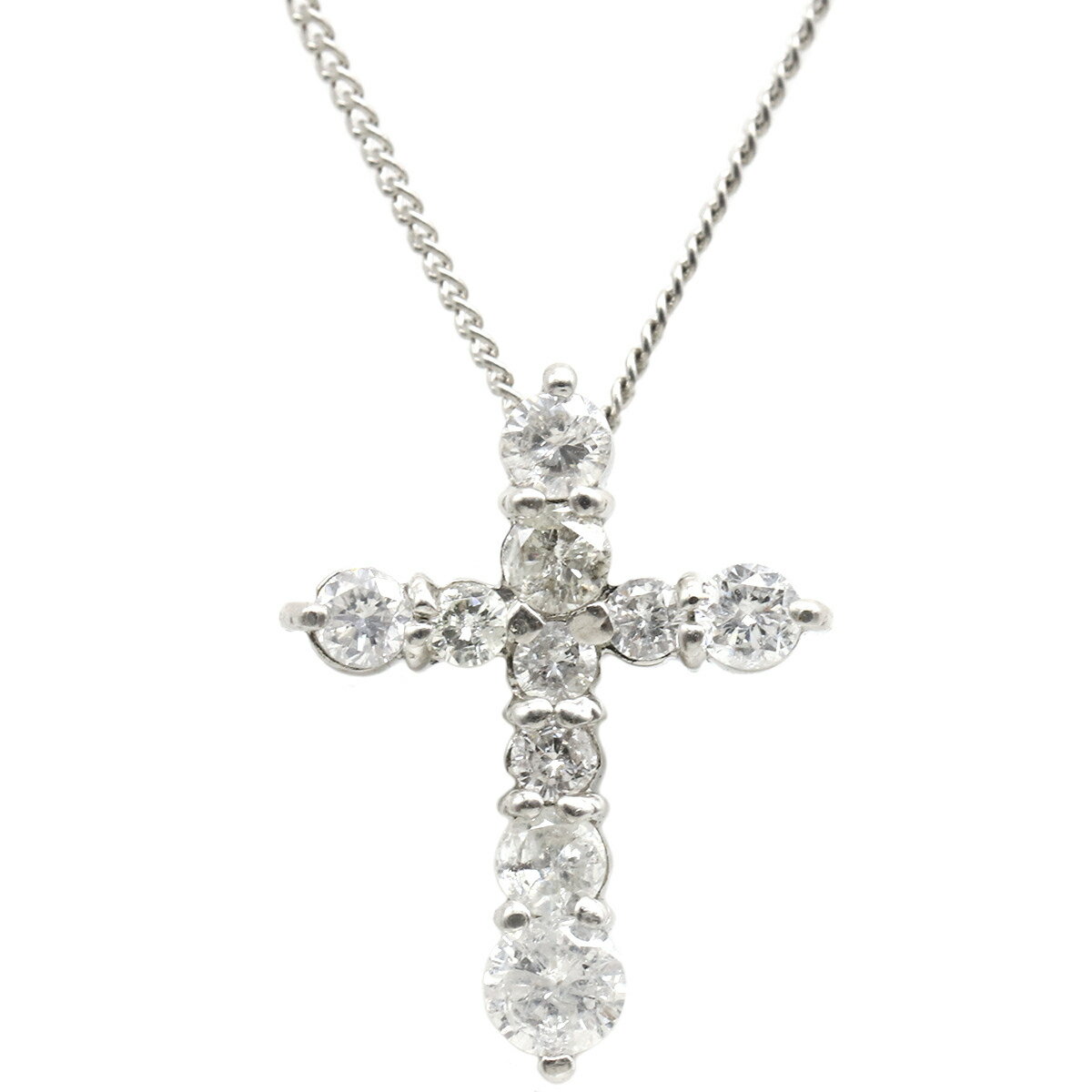 ネックレス ダイヤ クロスペンダント Pt900 シルバー 十字架 10石 10P 中古