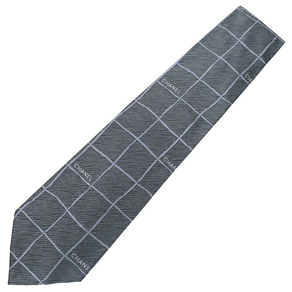 シャネル ネクタイ 格子柄 9.5cm シルク グレー シルバー 中古