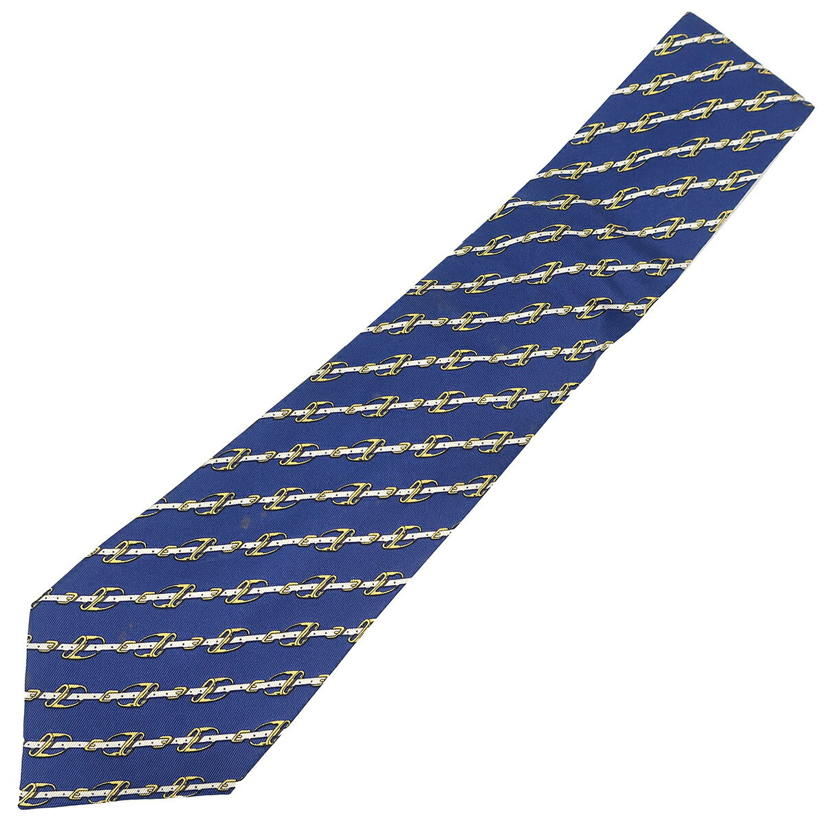 エルメス ネクタイ 馬具 9cm シルク マルチカラー 紺 ベルト 式典用馬勒 中古