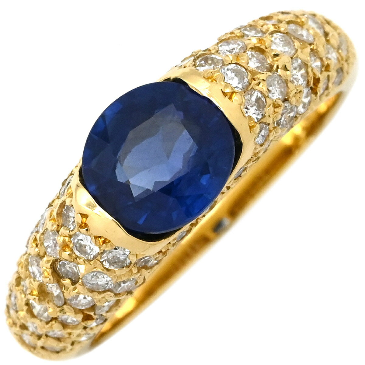 リング 指輪 サファイア ダイヤリング K18YG ゴールド 青 中古