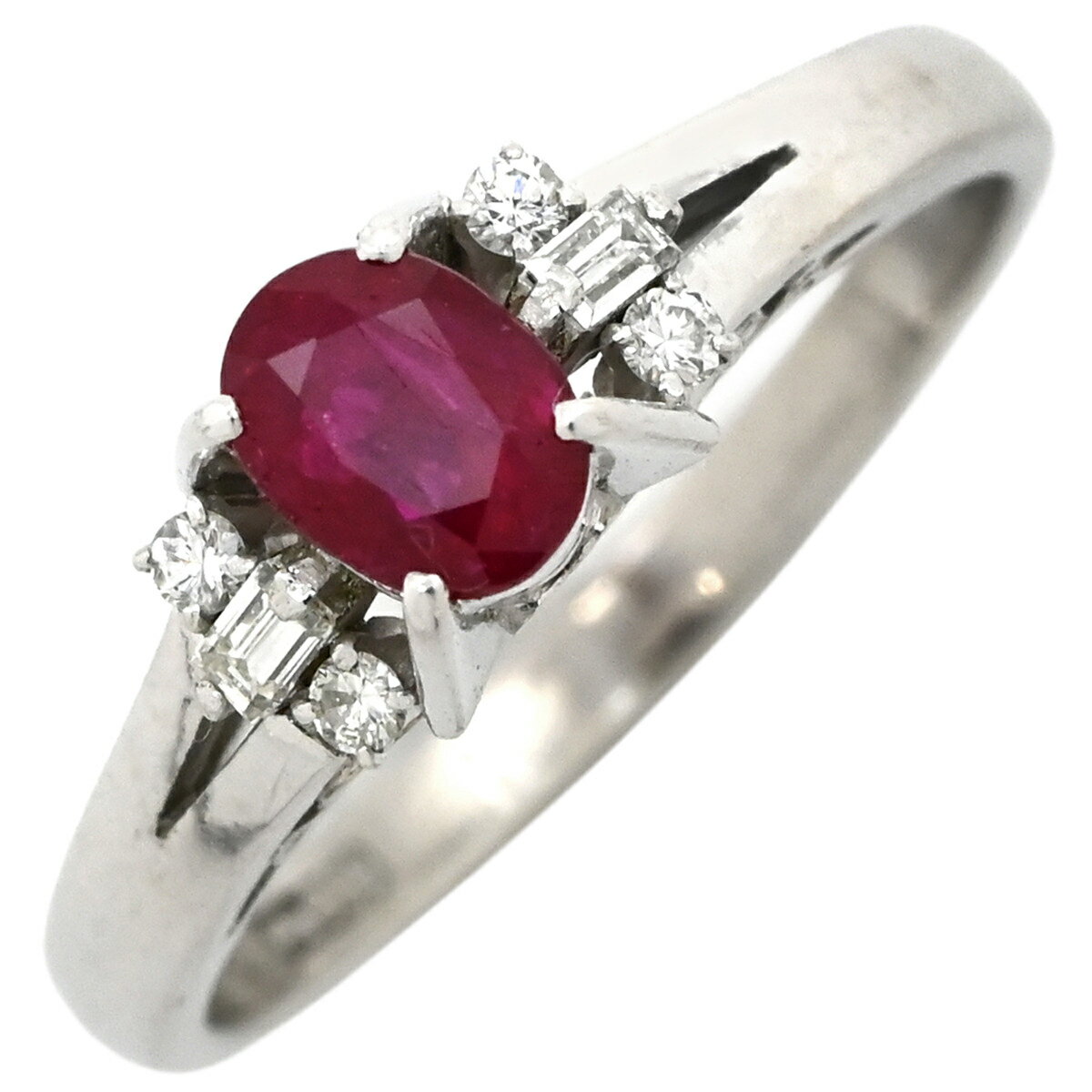 リング 指輪 ルビー ダイヤ リング Pt900 レッド 赤 プラチナム オーバル 中古